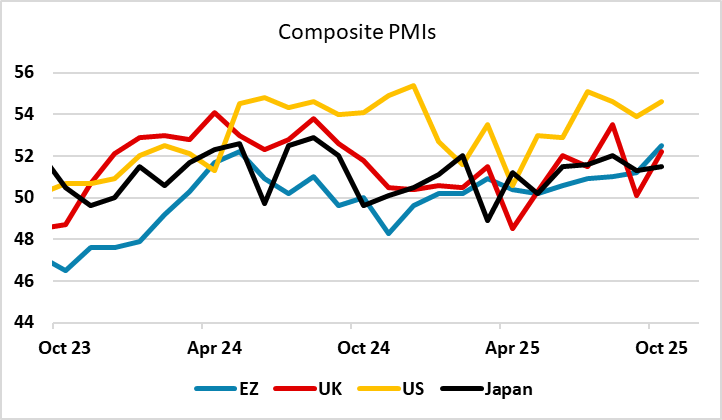 Friday sees the preliminary PMIs for November, along with UK October retail sales data and the final University of Michigan confidence numbers. The PMIs should set the tone, but are likely to see some decline from the strong October numbers both in Europe and the US. While the level is still likely to be consistent with solid growth, we expect lower indices in both Europe and the US than the consensus, and that may mean some correction to the risk positive tone seen through Thursday. The markets tend to take more notice of the Eurozone than the US S&P PMIs, so we could see EUR/USD slip to test 1.15 on softer numbers.