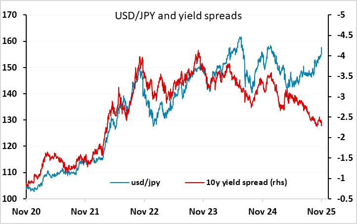 The JPY remains the currency with the most potential for volatility. The lack of action from the Japanese authorities to halt the recent downtrend is being seen by the market as a green light to sell JPY, with the copious verbal intervention being completely ignored. Many are saying that intervention is unlikely this side of 160 in USD/JPY, because the BoJ didn’t intervene until above 160 last time around. But this looks a little too USD centric. The latest JPY decline has seen it fall to new lows against the EUR and we are at the lows seen last July on a real trade-weighted basis. The JPY is also weakening without an obvious rationale, and is a long way below the levels suggested by the normal metrics like yield spreads and risk premia.