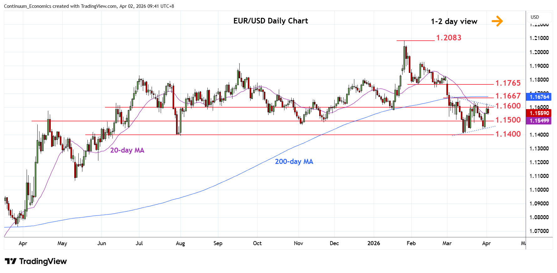 01:40 GMT - No follow-through on break above the 1.1600 level as prices settled back in consolidation within a 4-week triangle pattern from the 1.1667, 10 March high. Pullback see support starting at the 1.1500 level which should underpin. Break here will open up room for retest of the 1.1450 congestion and 1.1432/10 lows. Below these will further extend January losses to retrace gains from the January 2025 low. Meanwhile, resistance at the 1.1600 level now expected to cap. Only above here will expose strong resistance at 1.1640/1.1667, lower highs to retest.