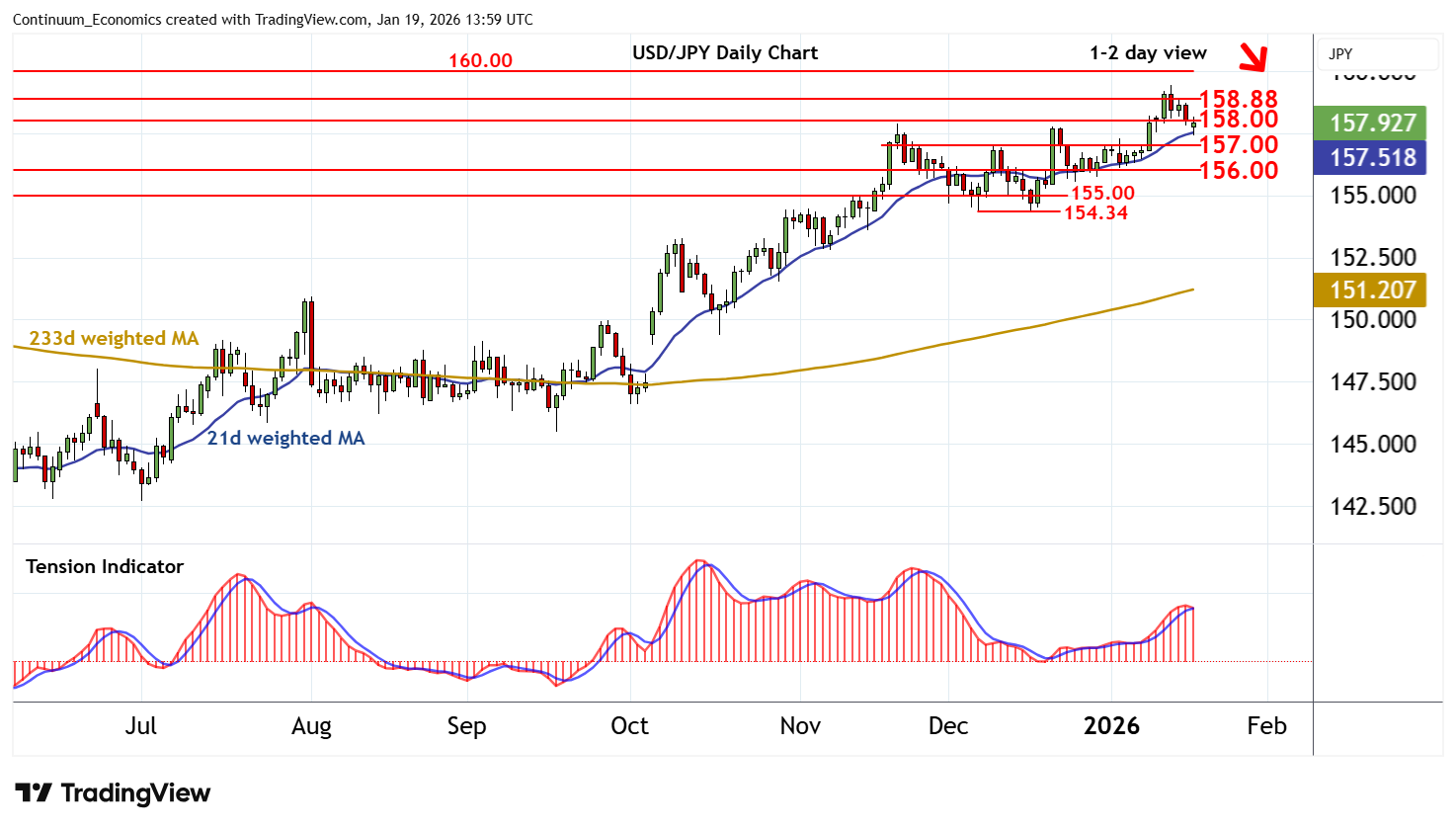 | R3 | 159.45 | * | 14 Jan YTD high | S2 | 156.00 | * | congestion | |