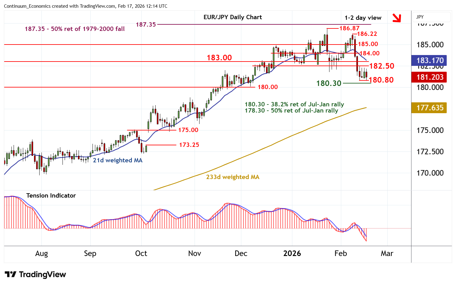 | R2 | 183.00 | * | break level | S3 | 180.30 | * | 38.2% ret of Jul-Jan rally | |