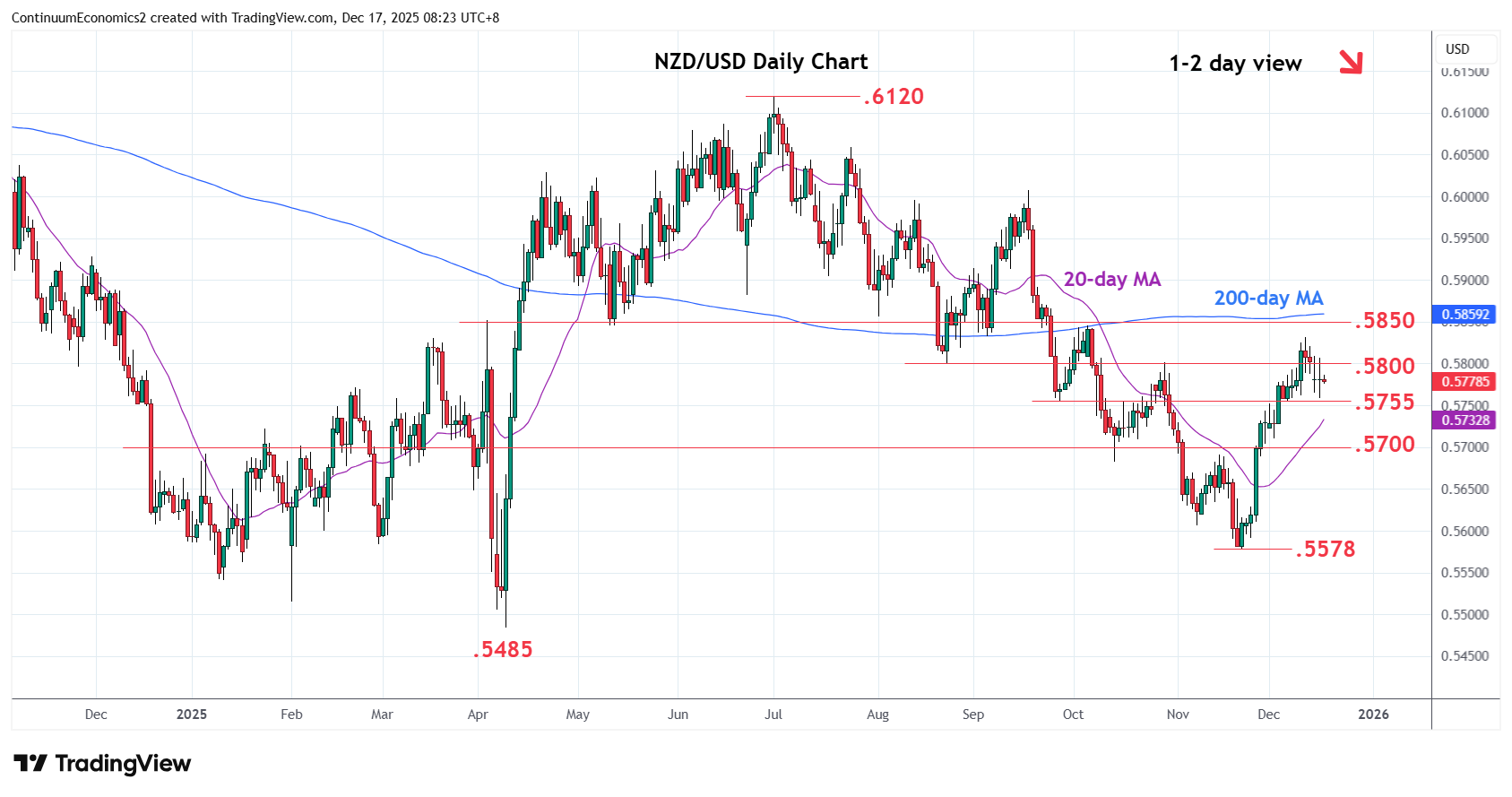 Chart NZD/USD Update: Leaning lower from the .5830 high