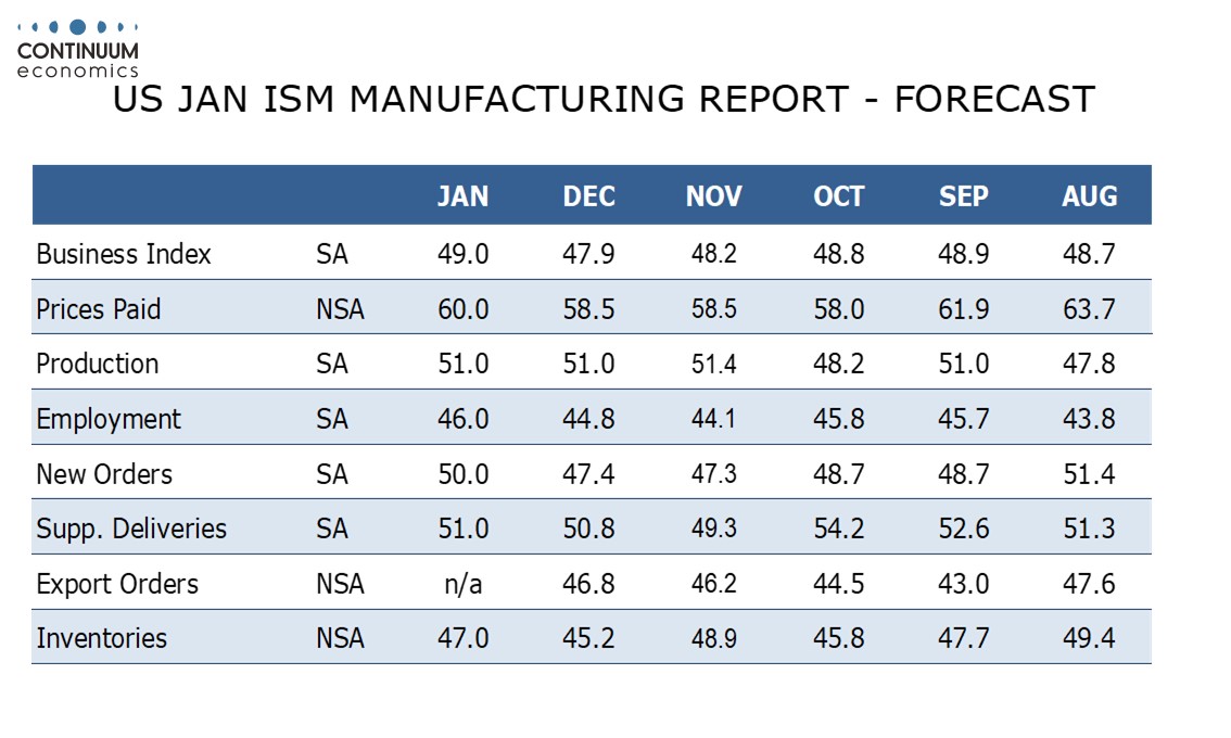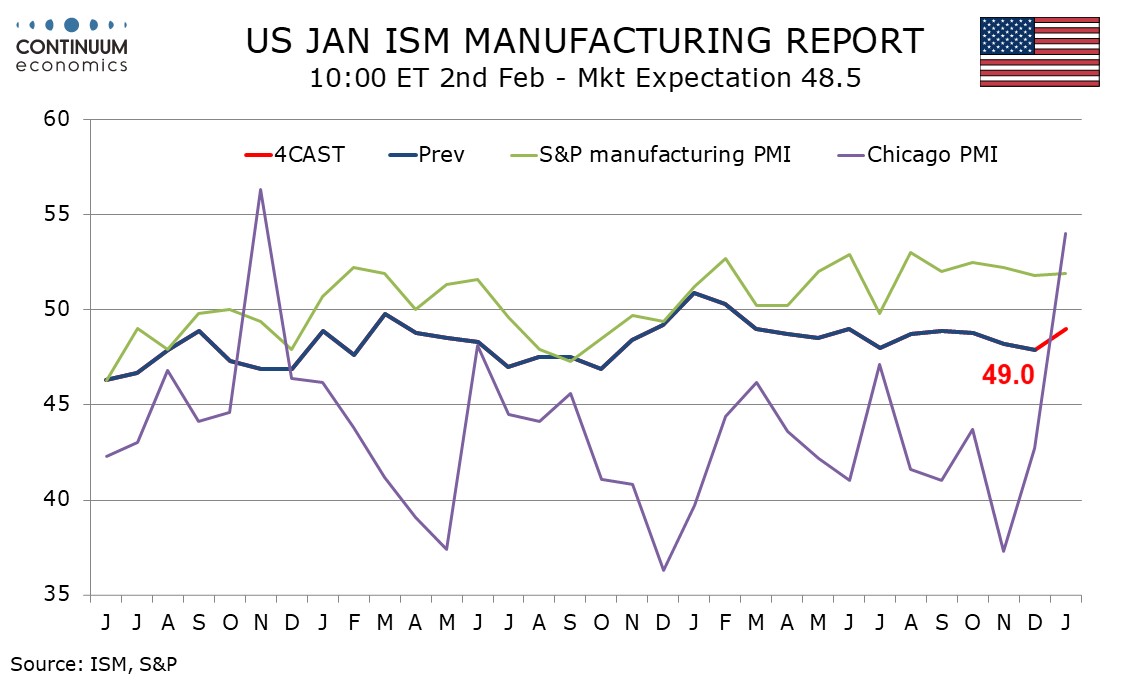 Preview: Due February 2 - U.S. January ISM Manufacturing - Improved if still short of neutral