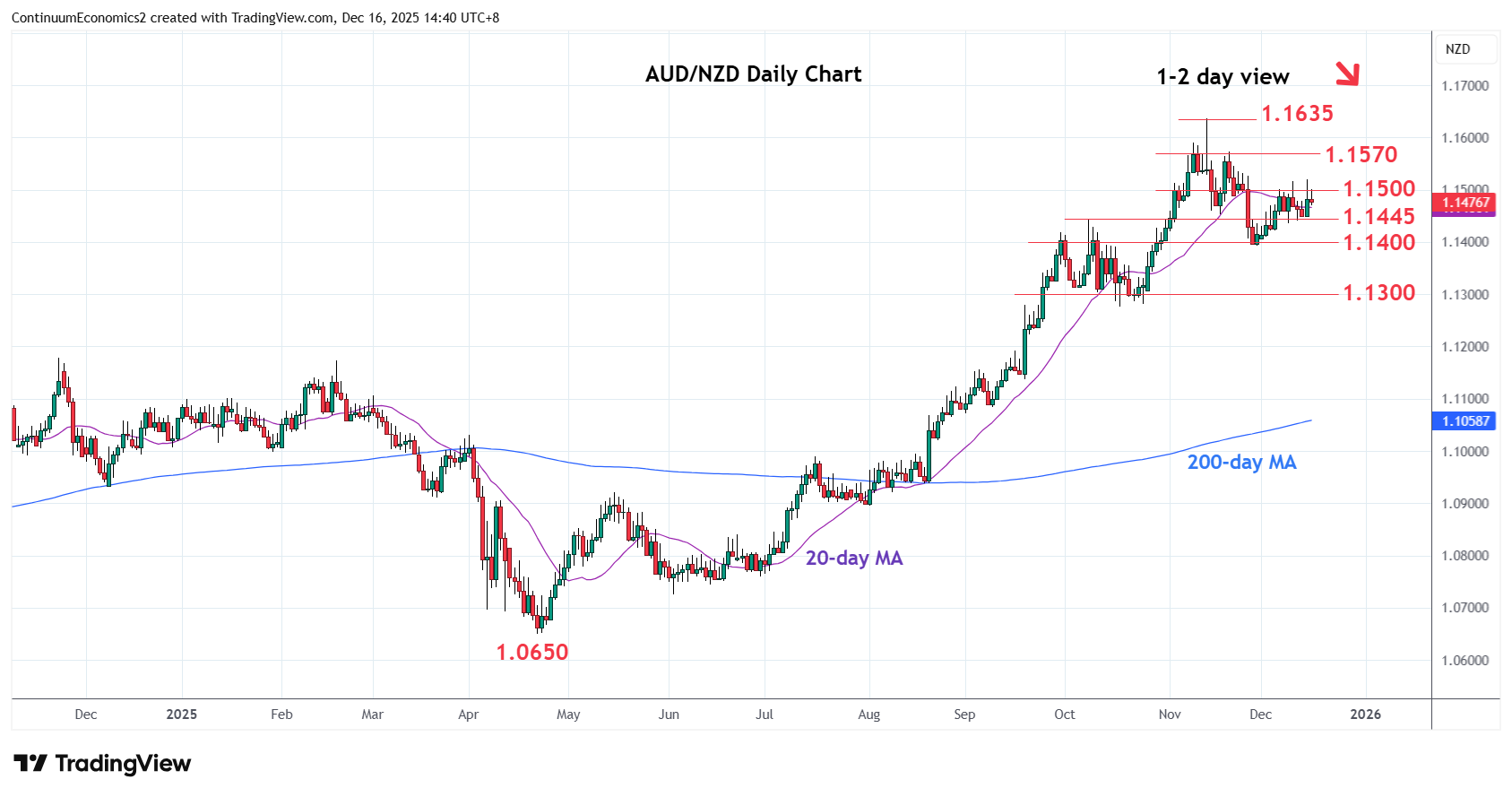 Chart AUD/NZD Update: Limited above the 1.1500 level