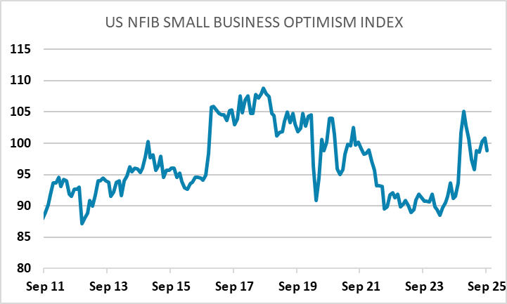 The NFIB survey wasn’t sufficiently different from expectations to have any notable market impact. The activity index was a little weaker than expected, but within recent ranges. The price index was a little higher, and may be a concern for the Fed as it does tend to lead (median) CPI by around 10 months. Recent reading have suggested there is little further downside for CPI, and this may discourage Fed hawks from future rate cuts. Disappointment at the lack of rate cuts might be the biggest risk for the equity market going forward, but would likely be mildly USD positive, particularly against the riskier currencies.