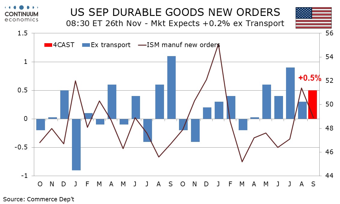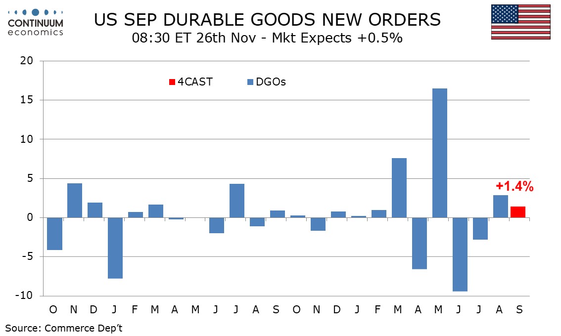 Preview: Due November 26 - U.S. September Durable Goods Orders - Trend modestly positive