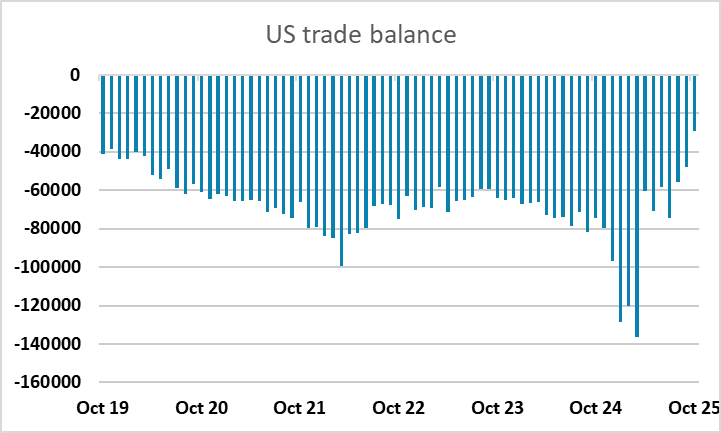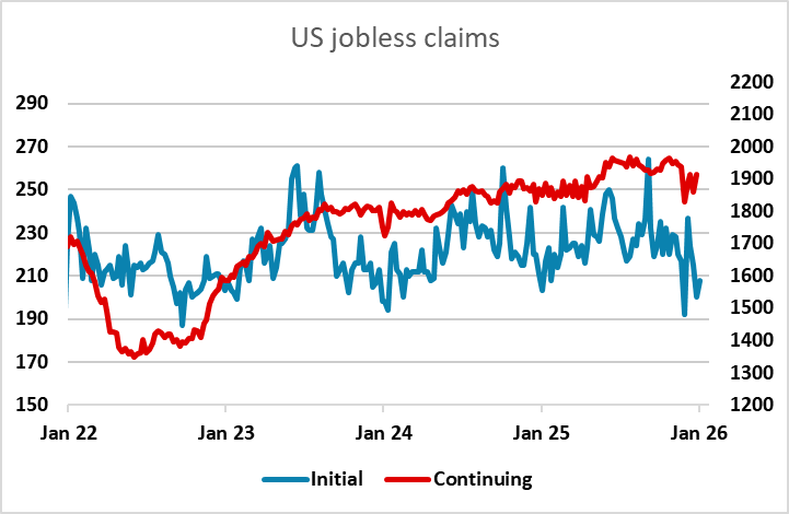 A modest rise in US jobless claims in the latest week still leaves initial claims at a very low level, and the Challenger data shows a y/y decline in US job cuts in December, offsetting the stronger November data. The October US trade data shows a much lower than expected deficit due both to higher exports and lower imports, and although there might be some concern about the quality of the data due to the government shutdown, the data as a whole is all USD positive. The USD is generally higher, with US yields up across the curve, and the USD seems likely to remain well bid into tomorrow’s employment data.