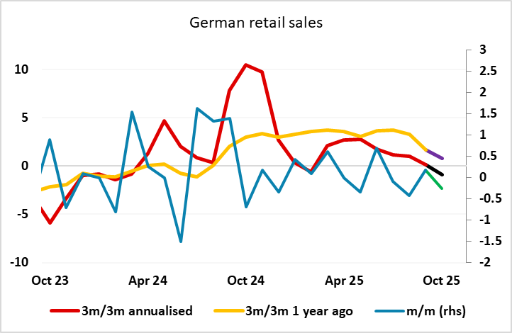 German retail sales a touch softer, some downside risks for the EUR on the crosses