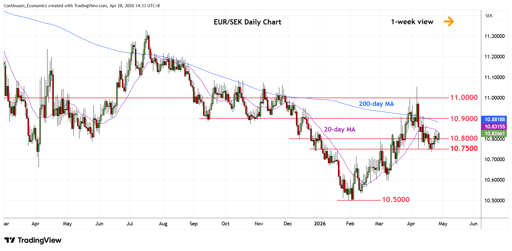 Chart EUR/SEK Update: Consolidating above 10.7500 support
