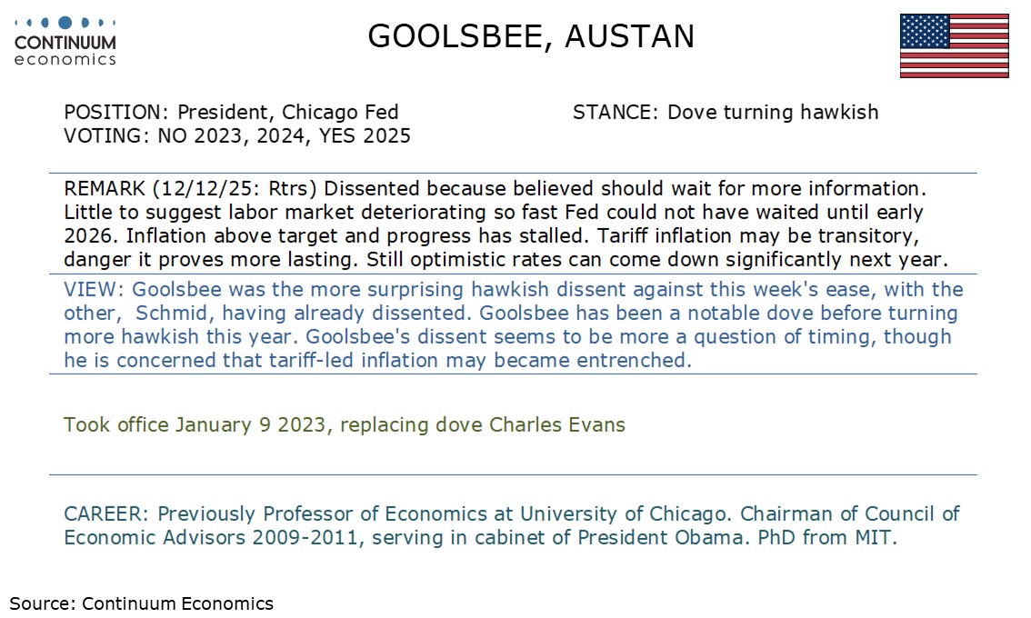 Fed's Goolsbee has explained his hawkish dissent to this week's decision to ease.