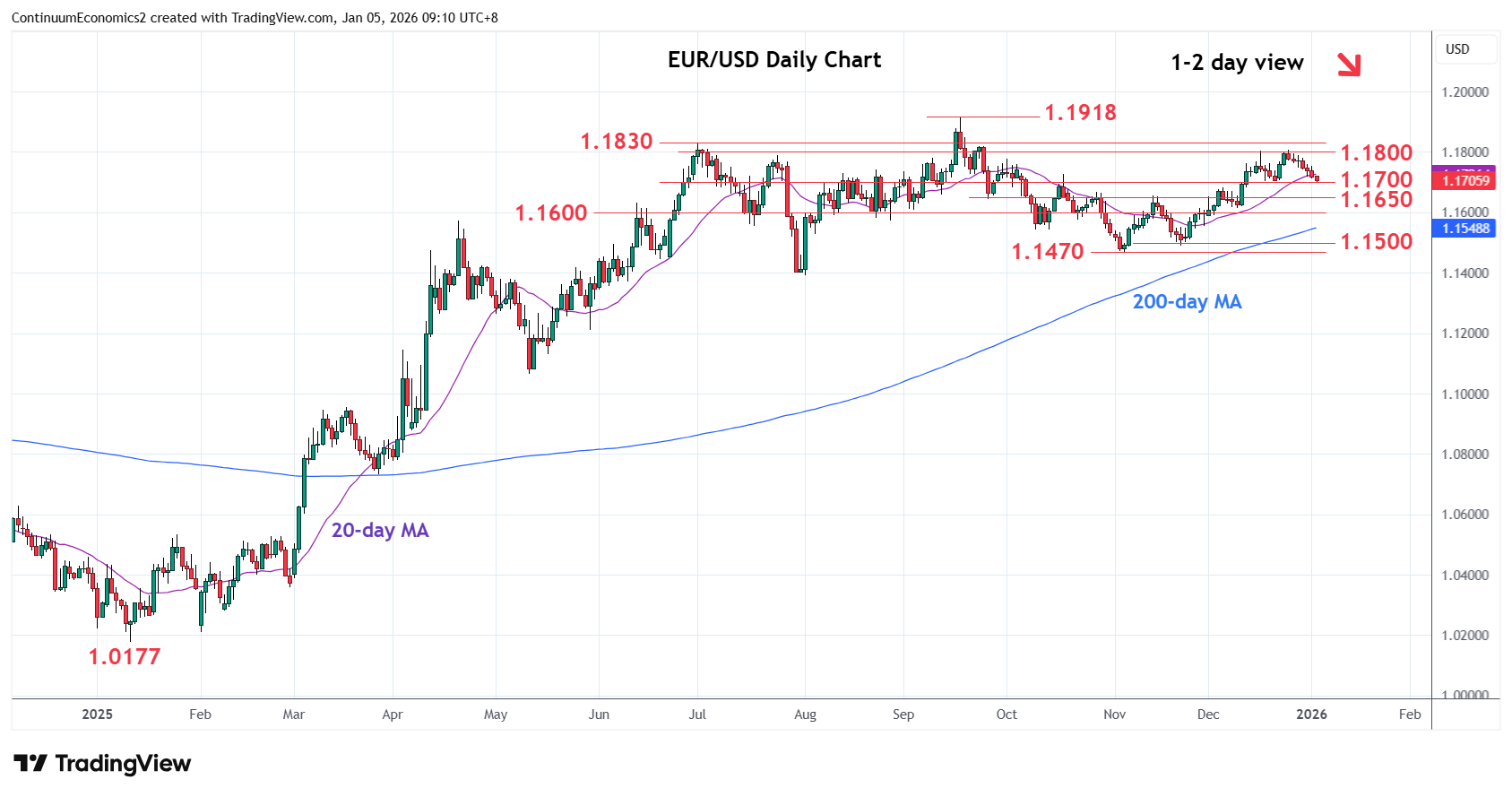 Chart EUR/USD Update: Weighing on 1.1700 support