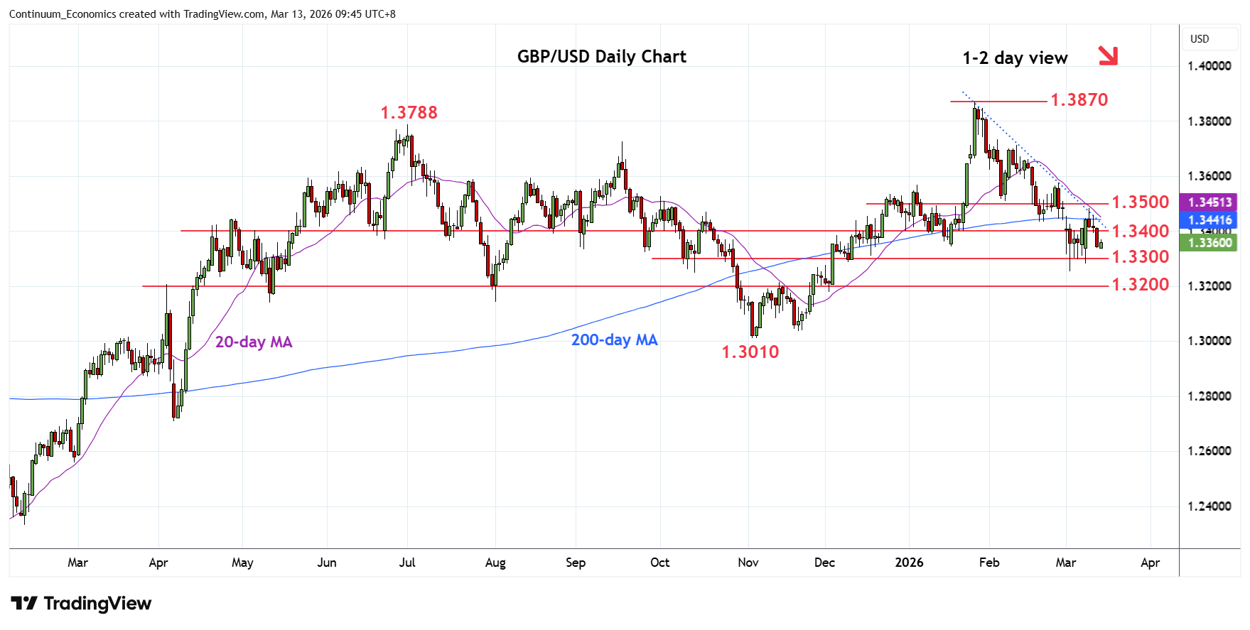 | R2 | 1.3485 | * | 10 Mar high | S3 | 1.3253 | ** | 3 Mar YTD low | |