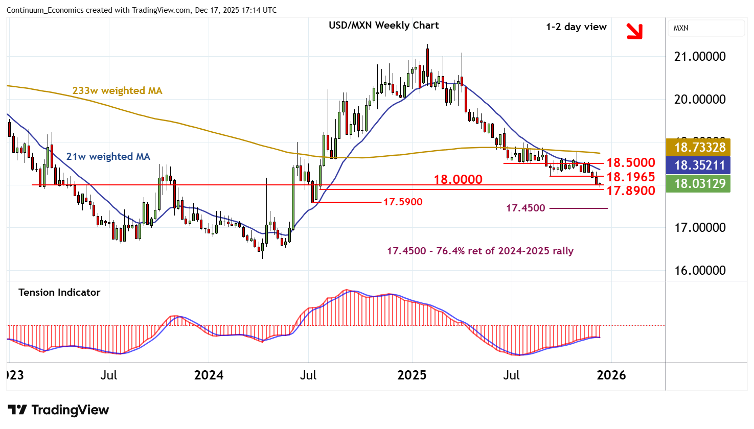 Chart USD/MXN Update: Balanced above fresh year low - background under pressure