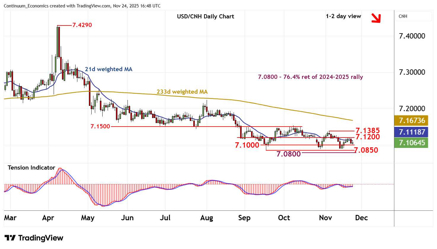 | R1 | 7.1200 | * | congestion | S4 | 7.0800 | * | 76.4% Sep 2024/Apr rally |