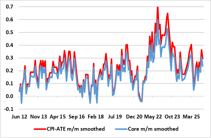 Given Norges Bank caution, we remain far less confident about the extent of easing into 2026 and have scaled back our projections at least for the current year. Any hike of the ilk markets have factored in the course of next few months is likely to be short-lived both as disinflation resumes and the real economy toll becomes more evident. More likely, we envisage two further 25 bp cuts in H2 and then 100 bp of cuts through next year. At 2.5%, that would still leave the policy rate still within the neutral rate range estimated by the Norges Bank. In other words, the Norges Bank will be merely taking its foot of the brake, rather than pressing on the accelerator.