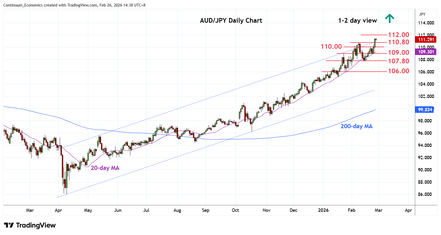 | R1 | 111.48 | * | 26 Feb YTD high | S4 | 106.85 | 2 Feb low |