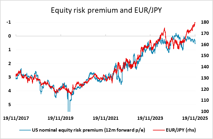 EUR/JPY has hit another new all time high this morning, and the JPY real trade-weighted exchange rate is close to the all time low seen in July last year. There is a press conference from Finance minister Katayama scheduled for 09:30 GMT following her meeting with BoJ governor Ueda, where the weakness of the JPY is sure to come up, along with the likely BoJ policy path given government stimulus plans. The Kyodo news agency reported on Wednesday Japan's stimulus package could exceed 20 trillion yen ($129 billion) and be funded by an extra budget of around 17 trillion yen. Katayama is very likely to once again emphasise her concern about “one-sided” and “rapid” JPY weakness, but verbal intervention has thus far not been enough to prevent the steady JPY decline.
