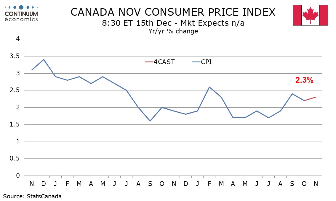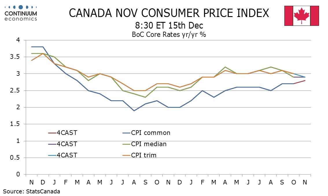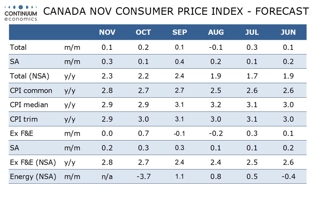 Preview: Due December 15 - Canada November CPI - Slightly firmer but not on the key core rates