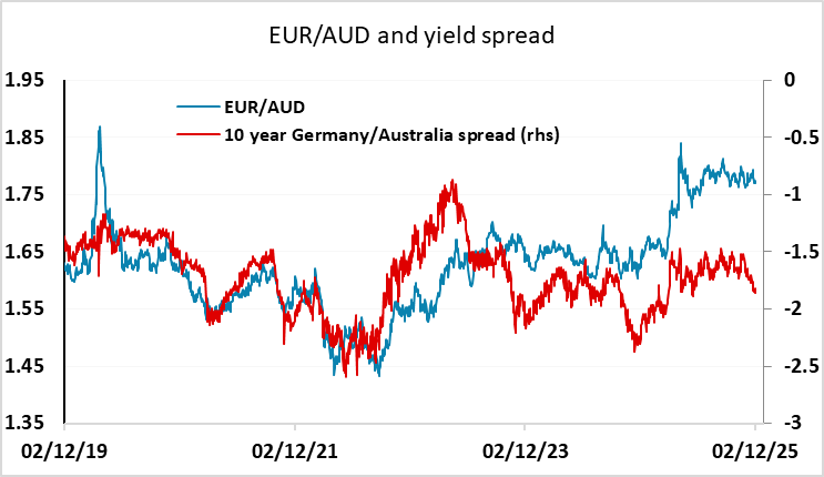 Earlier in the day we have Q3 Australian GDP which is expected to show a very solid increase of 0.7% q/q, following 0.6% in Q2. This should further underpin the AUD which continues to look undervalued given the sharp improvement in yield spreads against the USD in recent months. While the AUD can be held back in periods of risk aversion, particularly if they are specific to China, it’s hard to make arguments against AUD gains unless we see a very significant turn lower in global sentiment/global equities. The 0.64 handle has provided very good support on the occasions we have dipped below 0.65 since June, and we expect the top end of the year’s range above 0.67 to be tested by the end of the year.