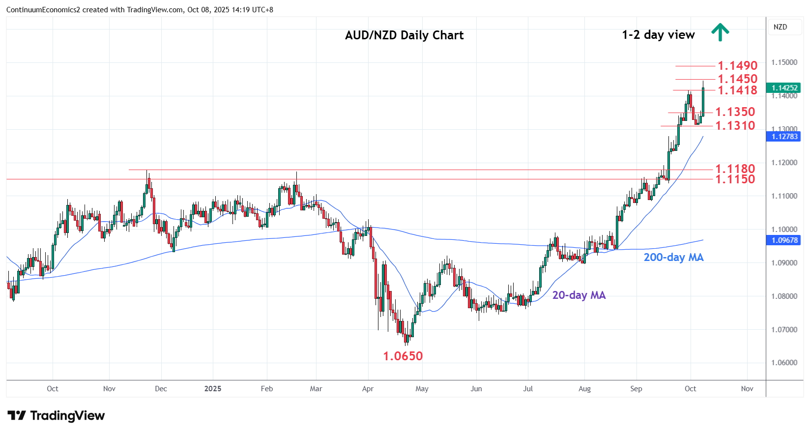 06:35 GMT - Consolidation above the 1.1310 low has given way to rebound through the 1.1418 September high to reach fresh high at 1.1445. Higher will see scope for retest of 1.1490, 2022 year high. Would expect reaction at the latter but consolidation is expected to give way to further gains later. Higher will see room to the 1.1580/1.1660, October/September 2013 highs. Meanwhile, support is raised to the 1.1350 congestion and extending to the 1.1310/00 area which is expected to underpin and sustain bullish gains from April current year low.