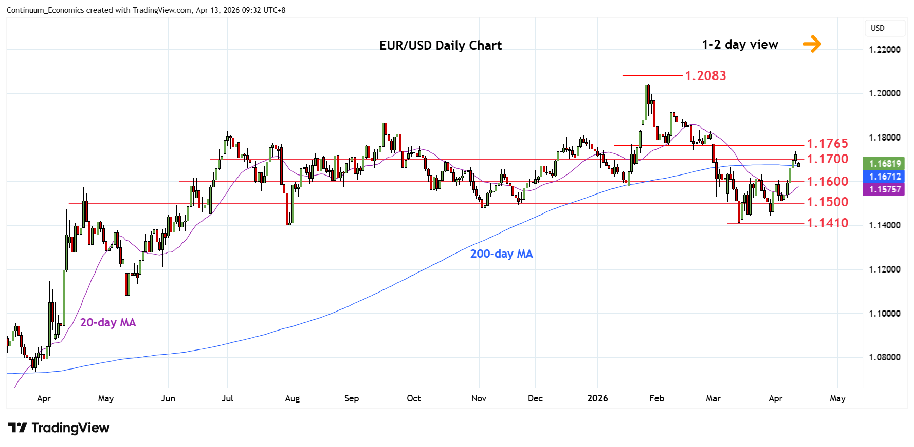 Chart EUR/USD Update: Settled back in consolidation below 1.1700