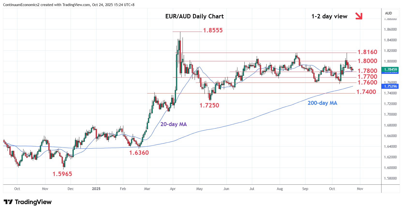Chart EUR/AUD Update: Consolidating at 1.7800, room for lower later