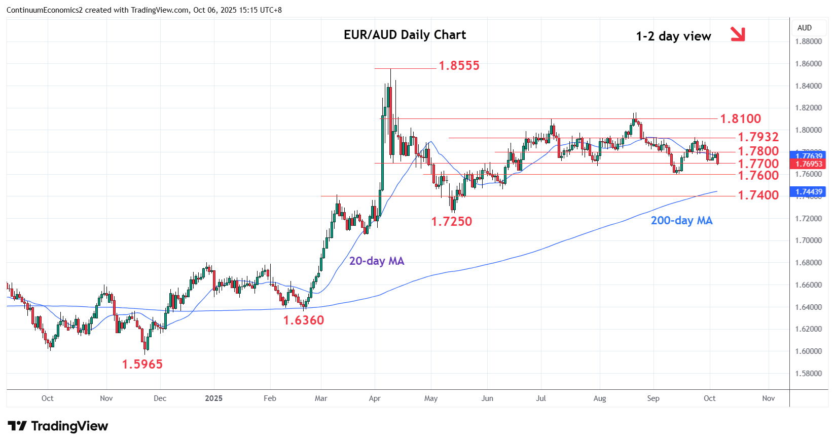 Consolidation within the 1.7700/1.7800 area has met with fresh selling pressure to extend pullback from the 1.7932 high.
