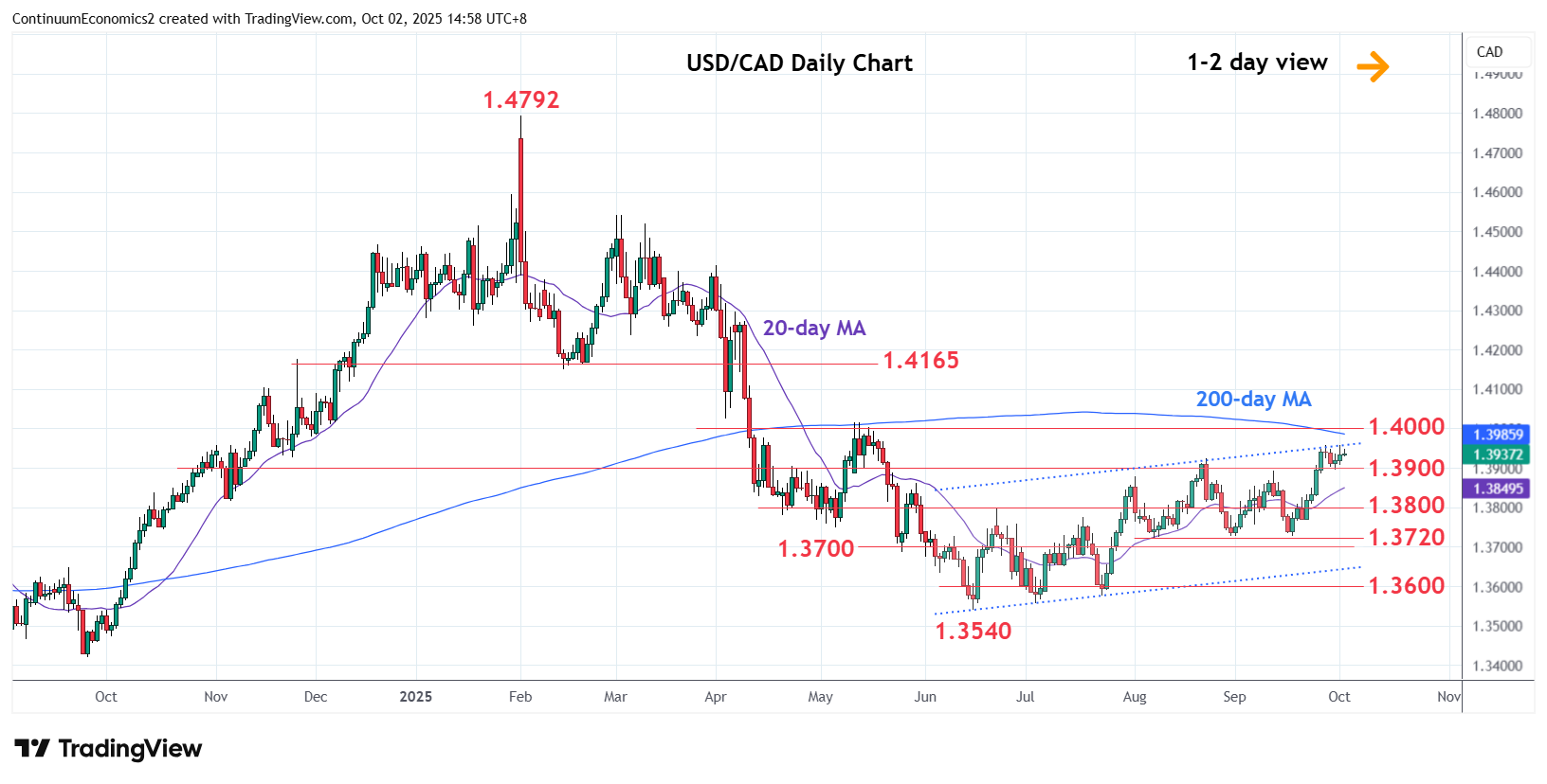 R1 | 1.3958 | * | 26 Sep high | S4 | 1.3700 | * | congestion |