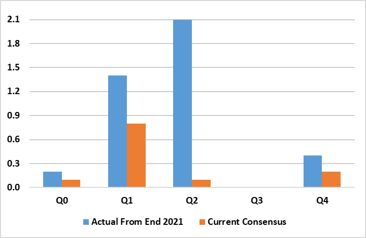 Even with a likely correction in March (envisaged even given some upside risks posed by the early Easter) we now see that Q1 GDP may rise by over 0.4% q/q but some of this will be countered by what may now be a flat(ter) Q2 outcome. If so, this would mimic what has been seen in recent years when GDP showed relative strength early in the year, only to falter into the second halves, thereby questioning seasonal adjustments - this backed up by the manner in which GDP has departed fro what surveys have been suggesting (Figure 1). Regardless, we now see 2026 GDP a notch or two higher than previously expected but a 0.6% projection would still be below consensus and under that anticipated by the IMF this week.
