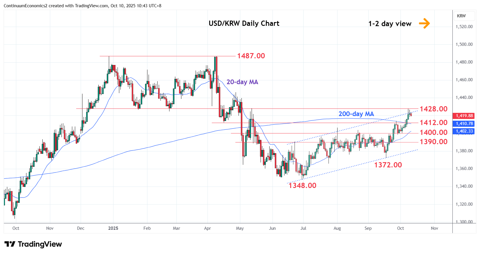 Chart USD/KRW Update: Settling back from the 1428.00 resistance
