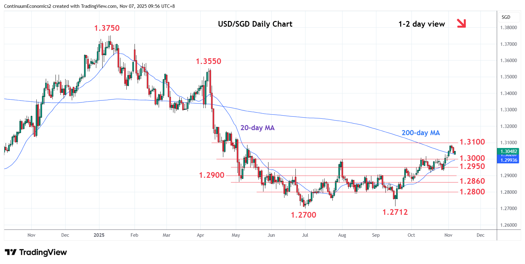 Chart USD/SGD Update: Settled back from test of 1.3085 resistance