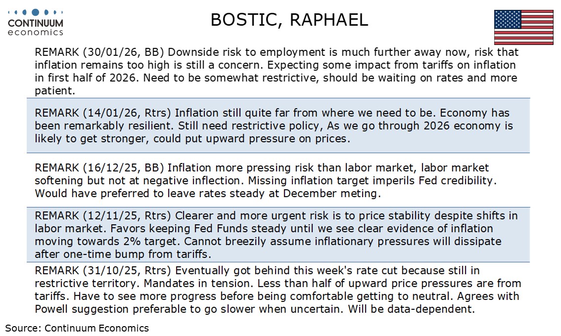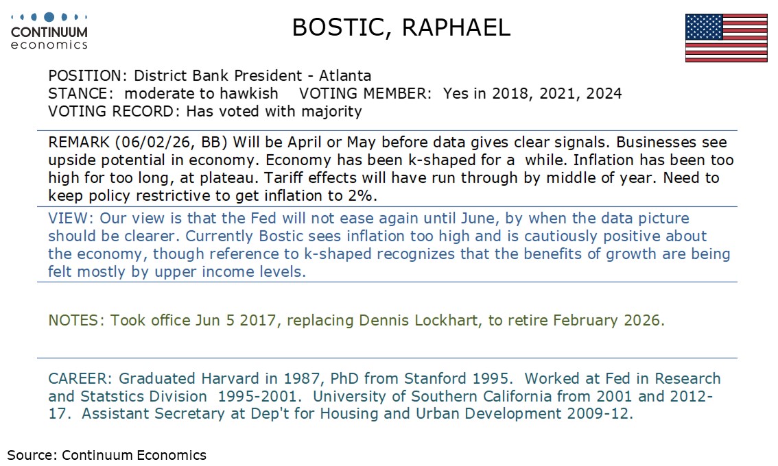 Fed's Bostic continues to sound quite hawkish, though his remarks are consistent with our view for easing in June.