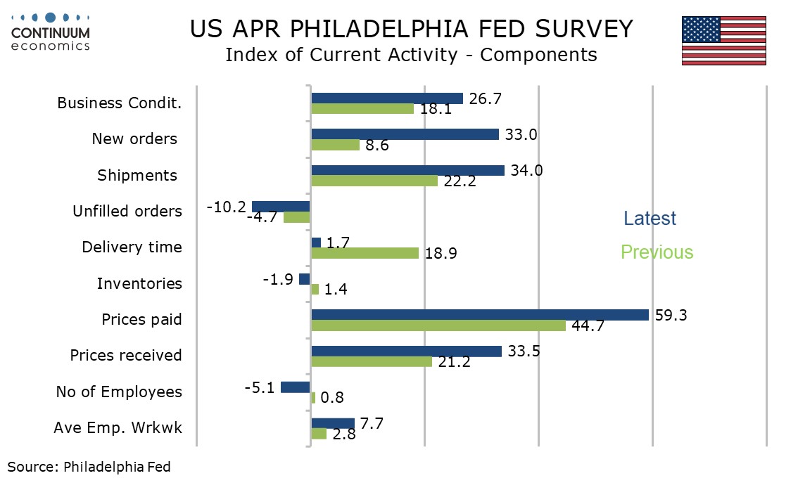 Philly Fed detail shows new orders very strong at 33.0 from 8.6, but employment slipping to -5.1 from a positive 0.8 in March.