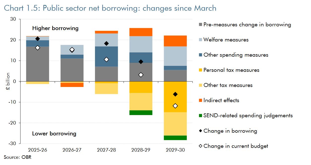 GBP has rallied after the Budget after an initial dip on the leaked release, despite yields dropping and a December rate cut from the BoE still being priced at around an 85% chance. The gains seemingly relate mostly to the more optimistic forecasts from the OBR which have reduced the supposed fiscal “hole” due to higher wage and inflation forecasts, despite lower productivity numbers. This in turn looks to have reduced the risk premium on gilts, in part because there is a lower requirement for gilt sales.