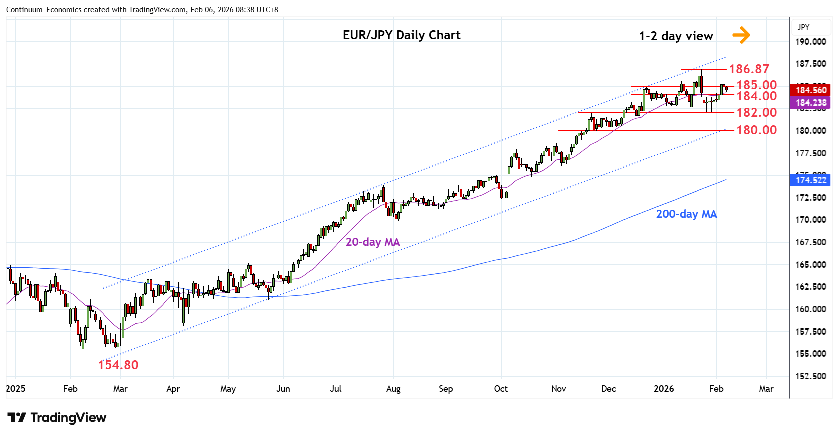 Chart EUR/JPY Update: Backed off from test of 185.00/55 resistance