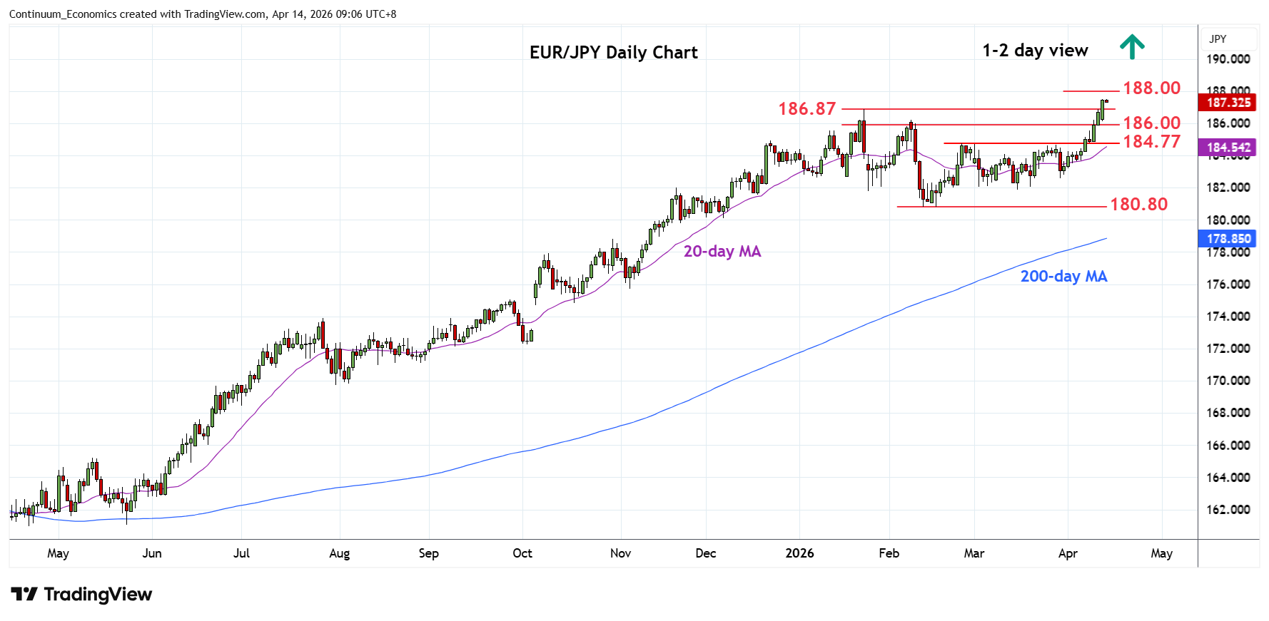 Chart EUR/JPY Update: Consolidating at 187.50 fresh multi-year high