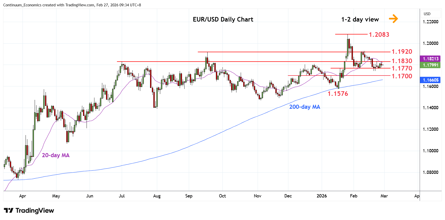 Chart EUR/USD Update: Extend consolidation at 1.1800
