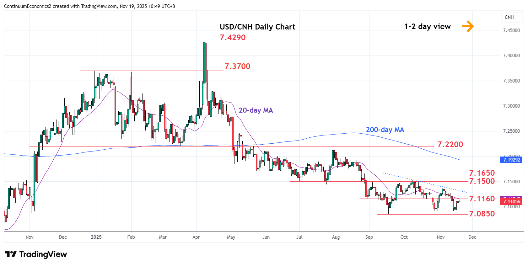 Chart USD/CNH Update: Consolidating test of 7.1160 resistance