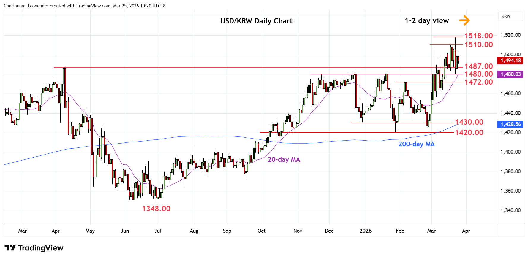Chart USD/KRW Update: Consolidating above 1487.00/1480.00 support