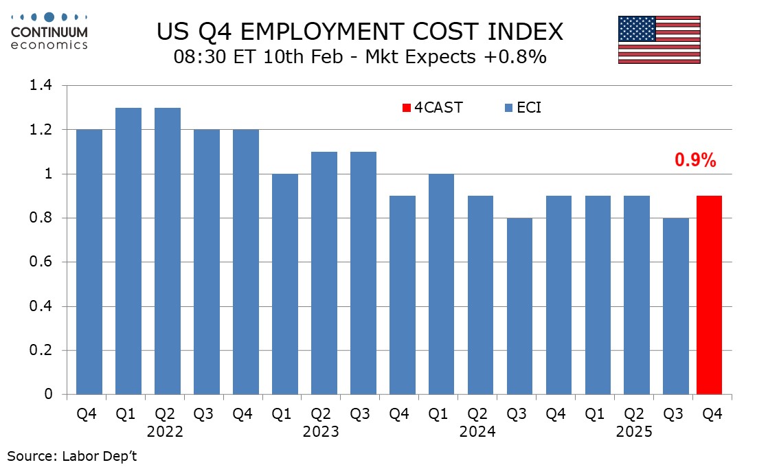 We look for the Q4 employment cost index (ECI) to increase by 0.9%, slightly firmer than the 0.8% seen in Q3 but matching the gains of Q1 and Q2, as well as Q4 2024.