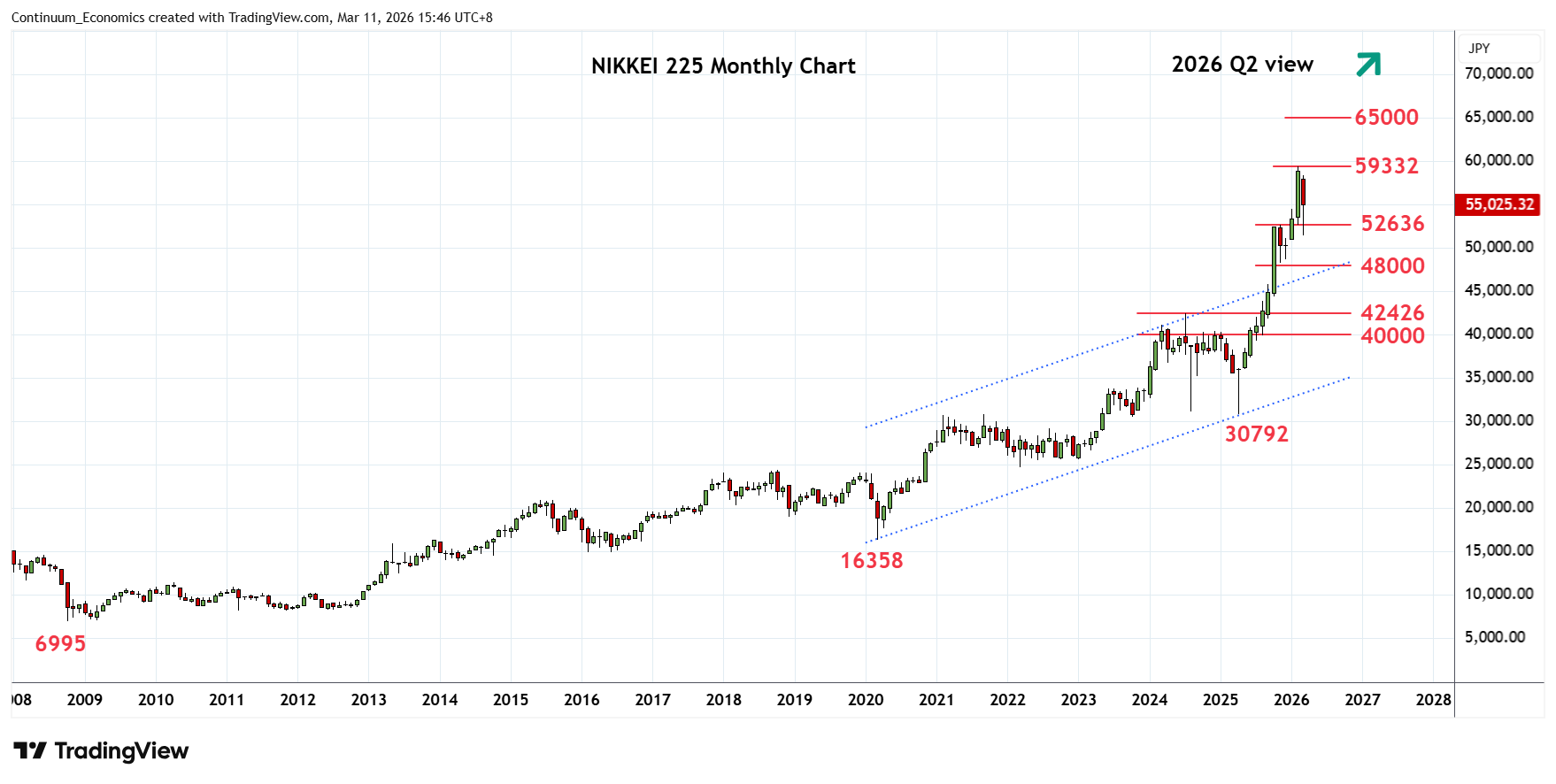 Gains at the start of January through the November 2025 year high at 52636 has seen extension to reach fresh all-time high at 59332