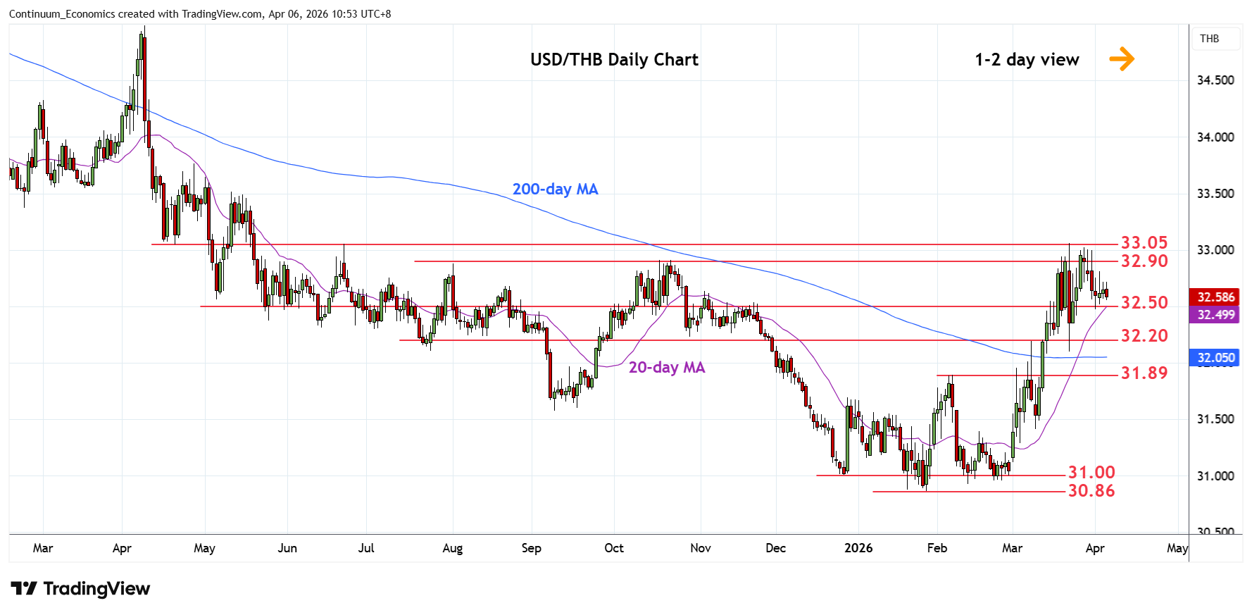 Chart USD/THB Update: Lower in consolidation from 33.05 high