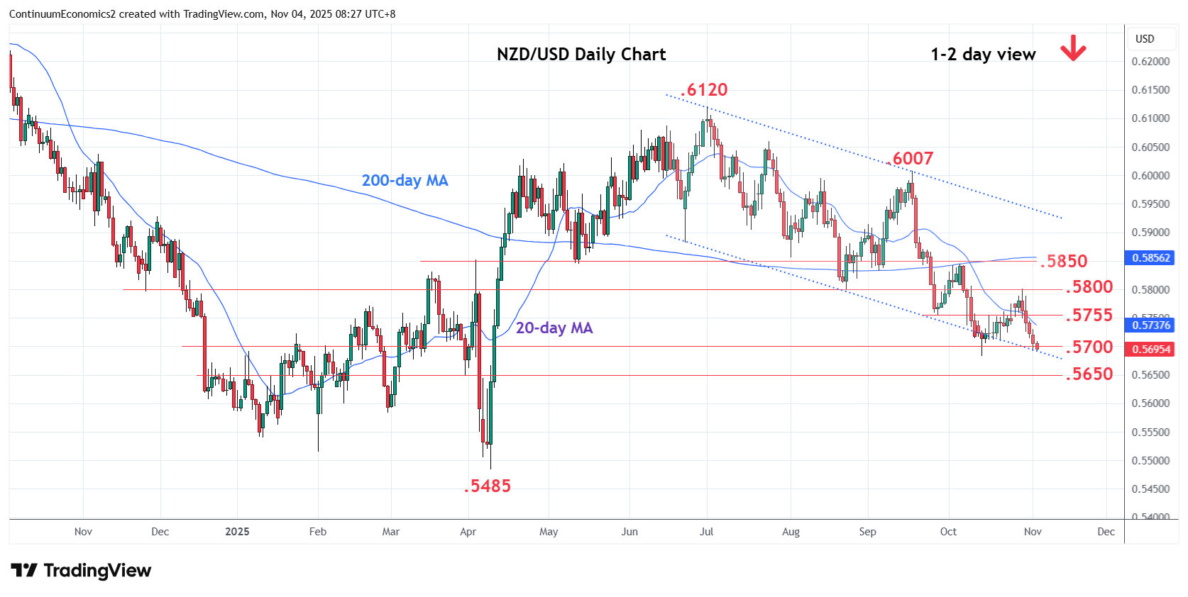 Chart NZD/USD Update: Under pressure, focus on .5683 low