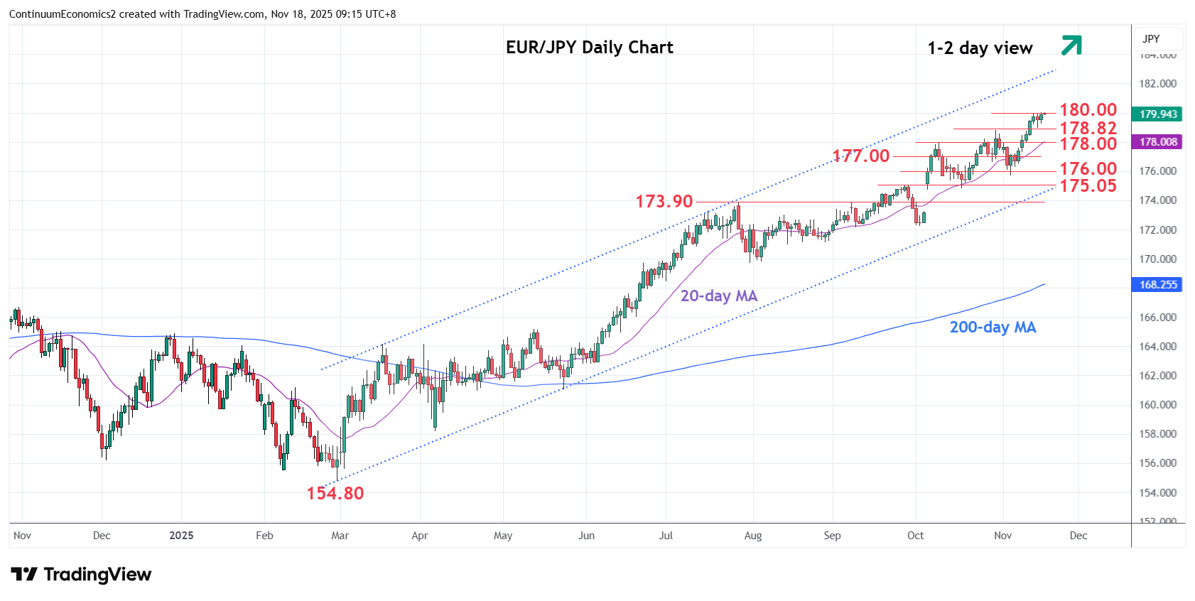 Chart EUR/JPY Update: Pressuring 180.00 level, scope for break