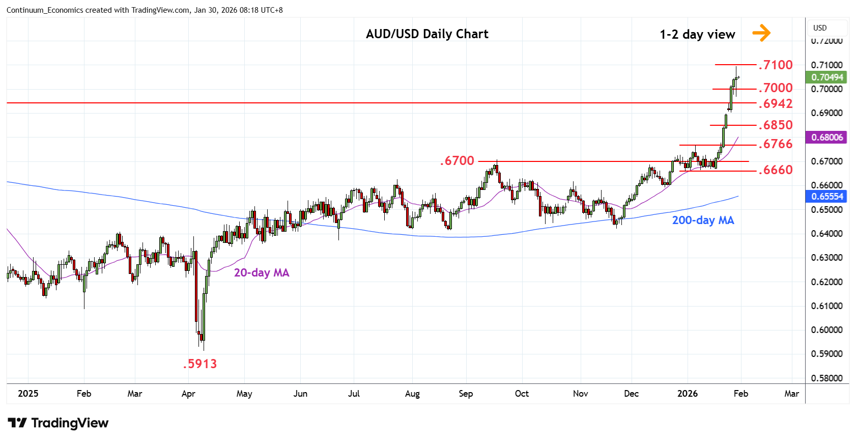 The RBA interest rate decision will be announced on Tuesday and while the probability of a hike has been increased substantially on stronger Q4 inflation, e believe the RBA will not be in a rush to hike rates. Base effect and transitory factors are not to be neglected, still underlying inflation is also crystal clear. If the RBA to going to hike rates, it is likely they will do so after changing their forward guidance first in the February meeting. Elsewhere, we have private inflation data on Monday, PMIs on Wednesday and Trade data on Thursday.