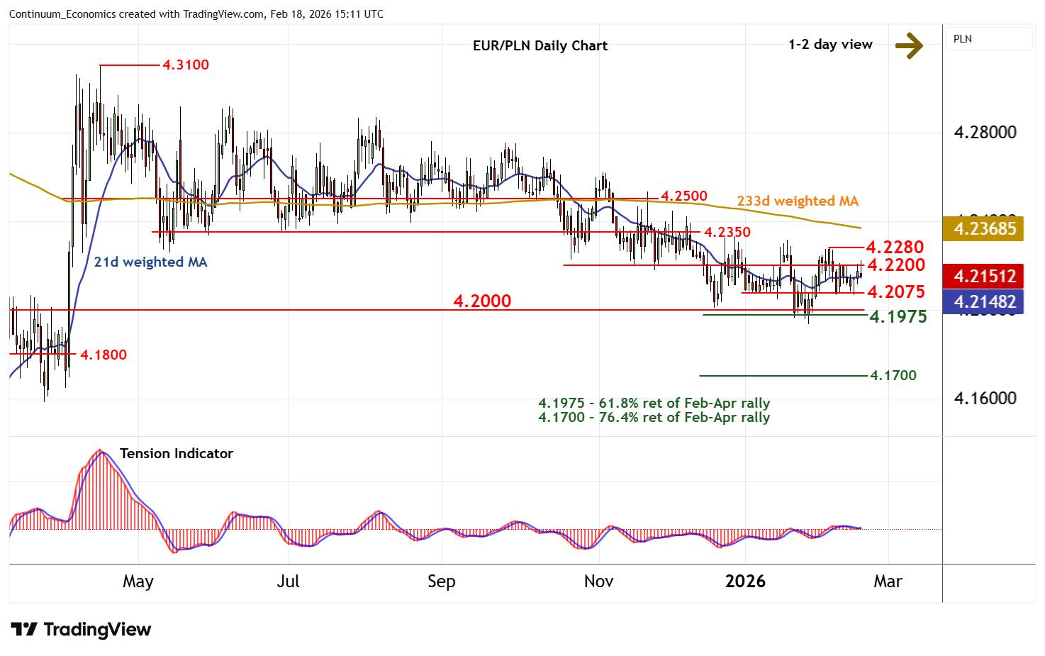 | R1 | 4.2200 | * | congestion | S4 | 4.1700 | ** | 76.4% ret of Feb-Apr 25 rally |