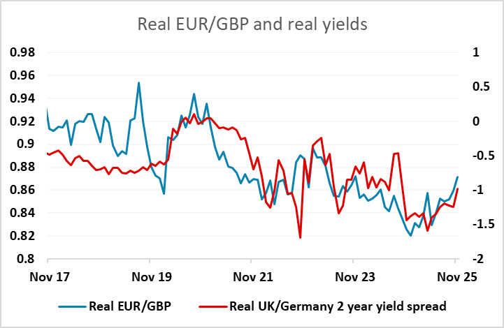 In practice, this is unlikely to make much difference to BoE policy, so we wouldn’t expect it to have a persistent impact on GBP, and GBP has recovered its initial losses. But the GBP tone remains weak, with the upcoming Budget expected to introduce significant fiscal tightening and likely leading to a BoE rate cut in December. The political picture is also unsettling, with the rumours of a leadership challenge to PM Starmer now triggering calls for resignations of senior aides. Even so, we wouldn’t expect any sharp GBP decline, as a tight Budget, while likely leading to easier monetary policy, might also calm some of the nerves about the UK fiscal position. So while we favour the GBP downside, EUR/GBP gains through 0.8850 are likely to prove difficult near term.