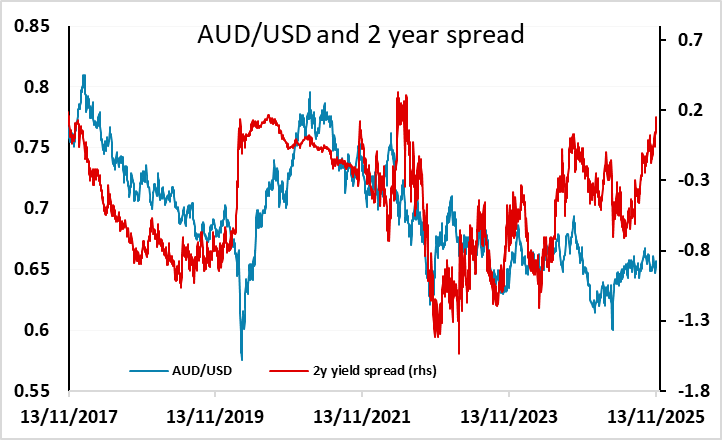 The October Australian labor report was solid with unemployment rate tread lower from 4.5% to 4.3% with participation rate unchanged. Headline employment change also beats at 42.2K with strong full time employment. The AUD gained 20 pips in response, and has gained another 10 pips this morning in Europe. The AUD has underperformed yield spreads recently and we would see scope for a retest of the top end of its recent range above 0.67 as long as any equity market weakness remains mild.