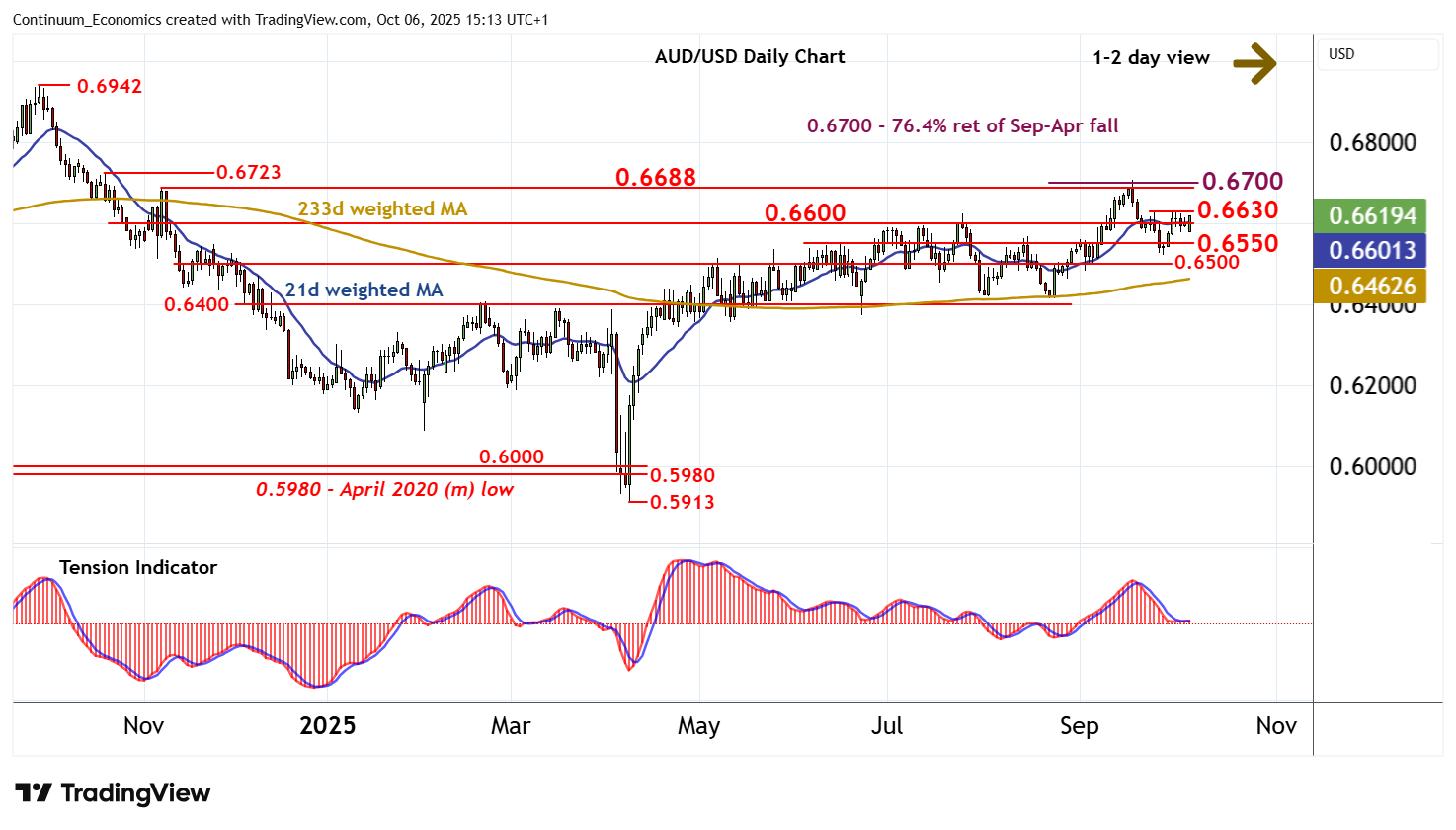 Little change, as prices extend consolidation within the tight 0.6600/30 range