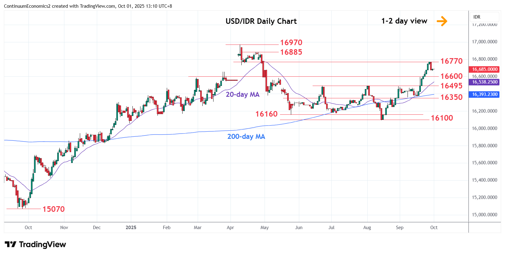 Chart USD/IDR Updates: Room for deeper pullback from 16770 high